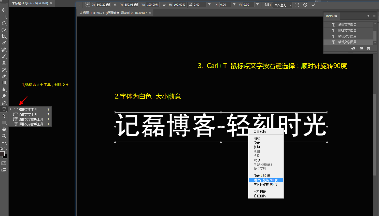 选横排文字工具创建文字工具-文字颜色为白色(大小随意)