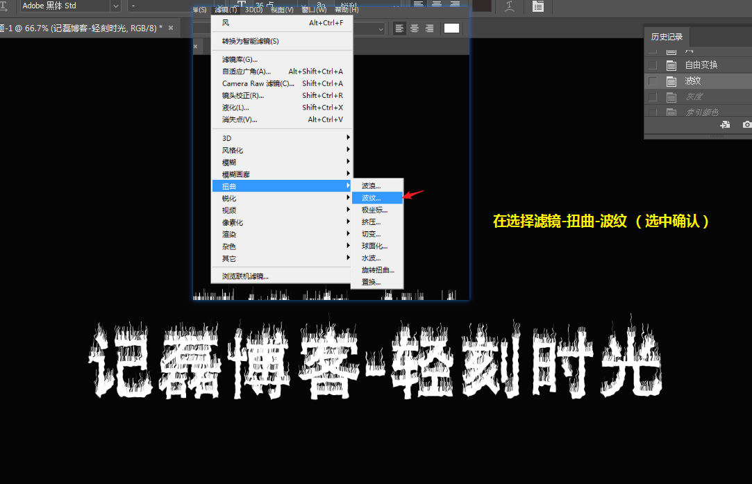 选择滤镜-扭曲-波纹(选这中 确定)