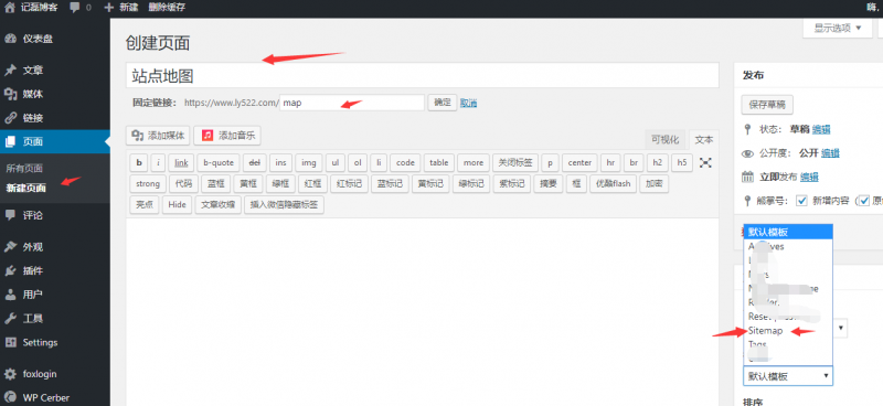 到后台页面-新建页面,选择sitemap页面模板