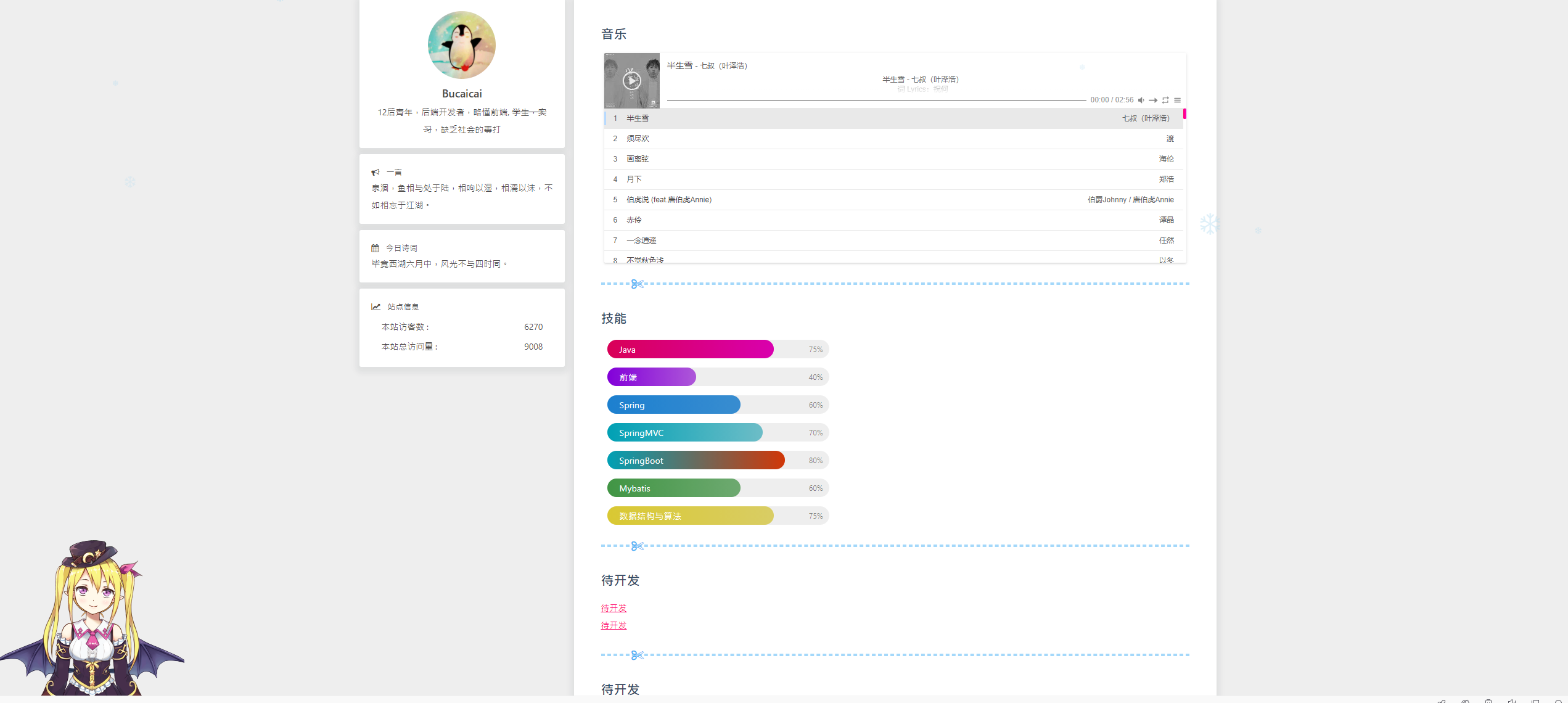 一款很不错的个人介绍页,画面可以更改,后续未能开发更加美丽,这里放一个演示站看下