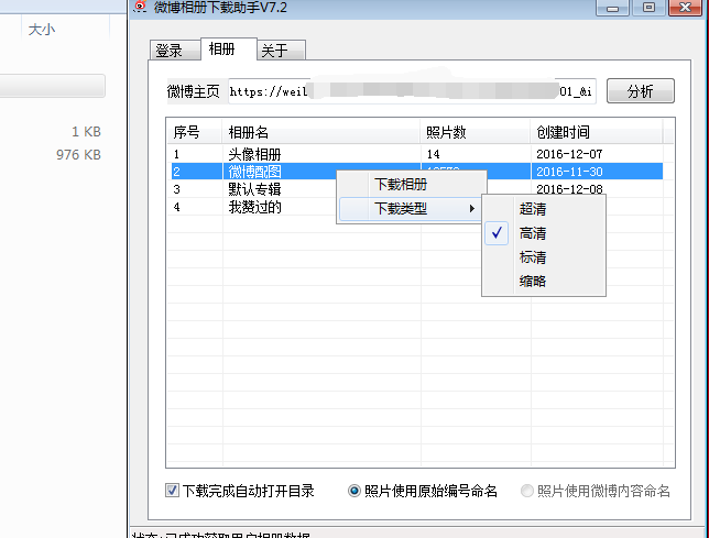3,点击一个相册名右键可选择下载类型