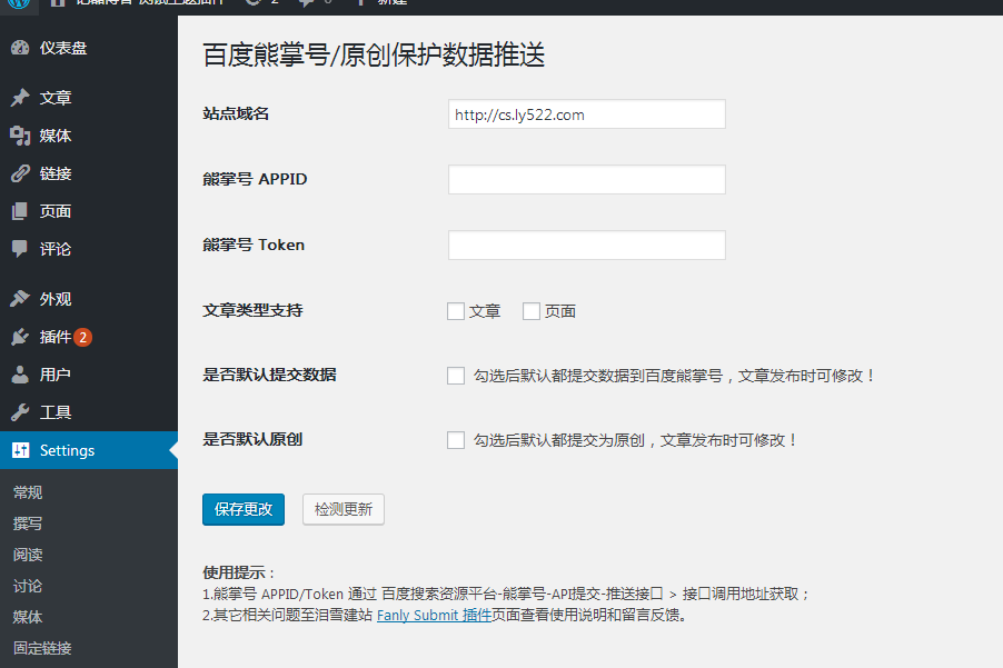 WordPress插件熊掌号/原创保护文章数据提交插件与代码提交